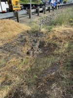 The next step in the accident recovery was the fuel spill containment, cleanup, and some debris cleanup. Again, team Pro-Enviro was on the scene taking care of the spill recovery.