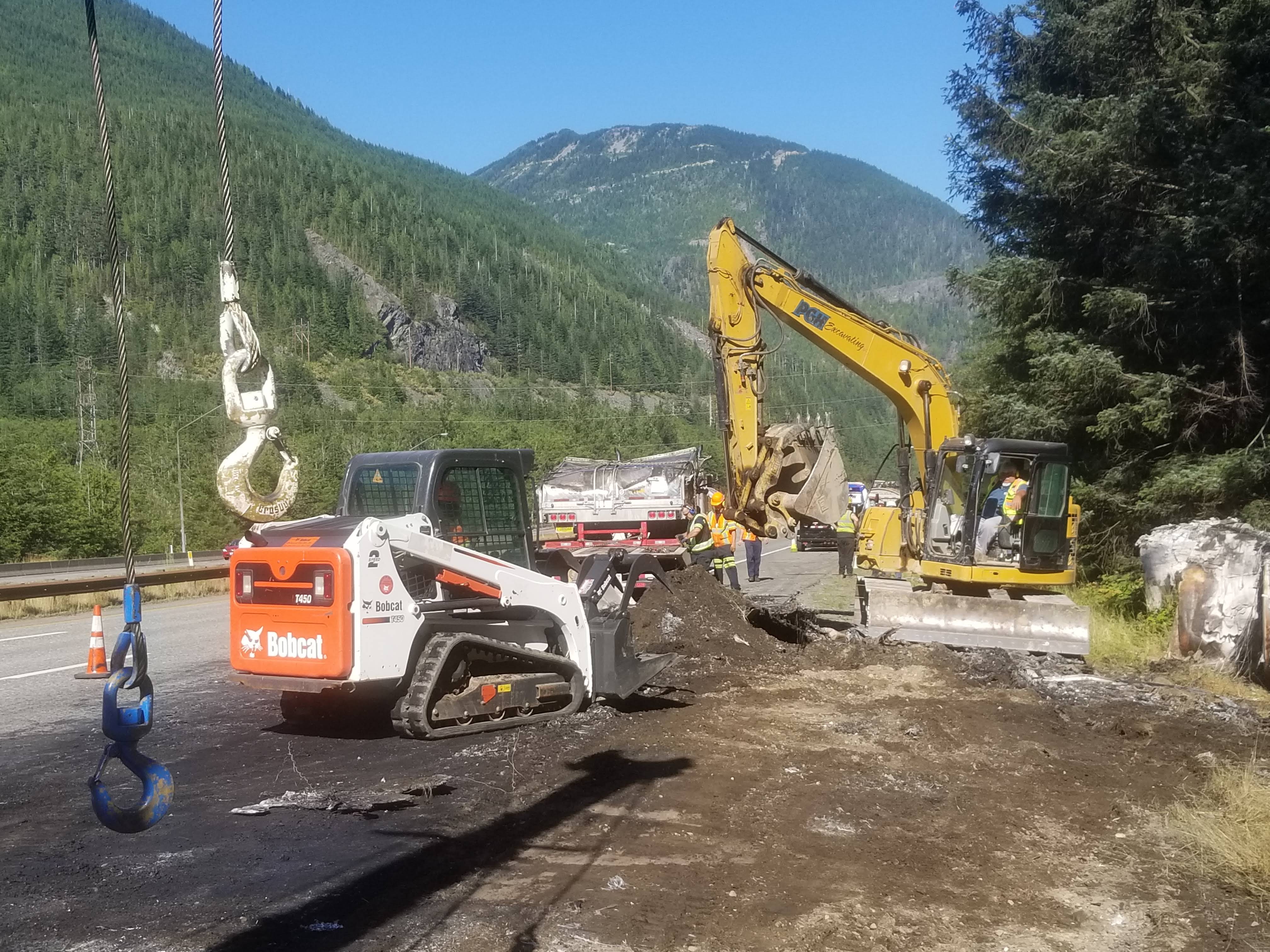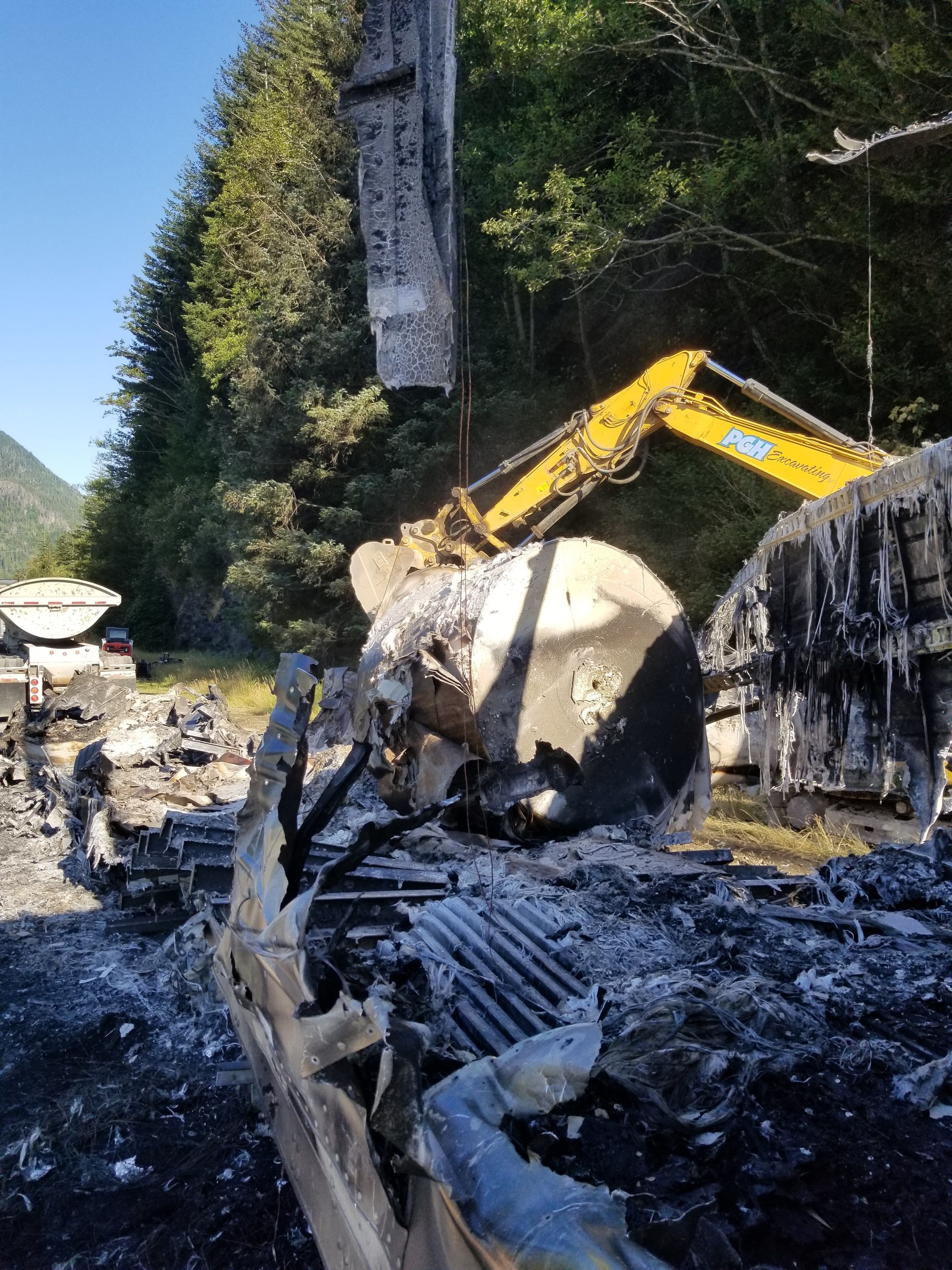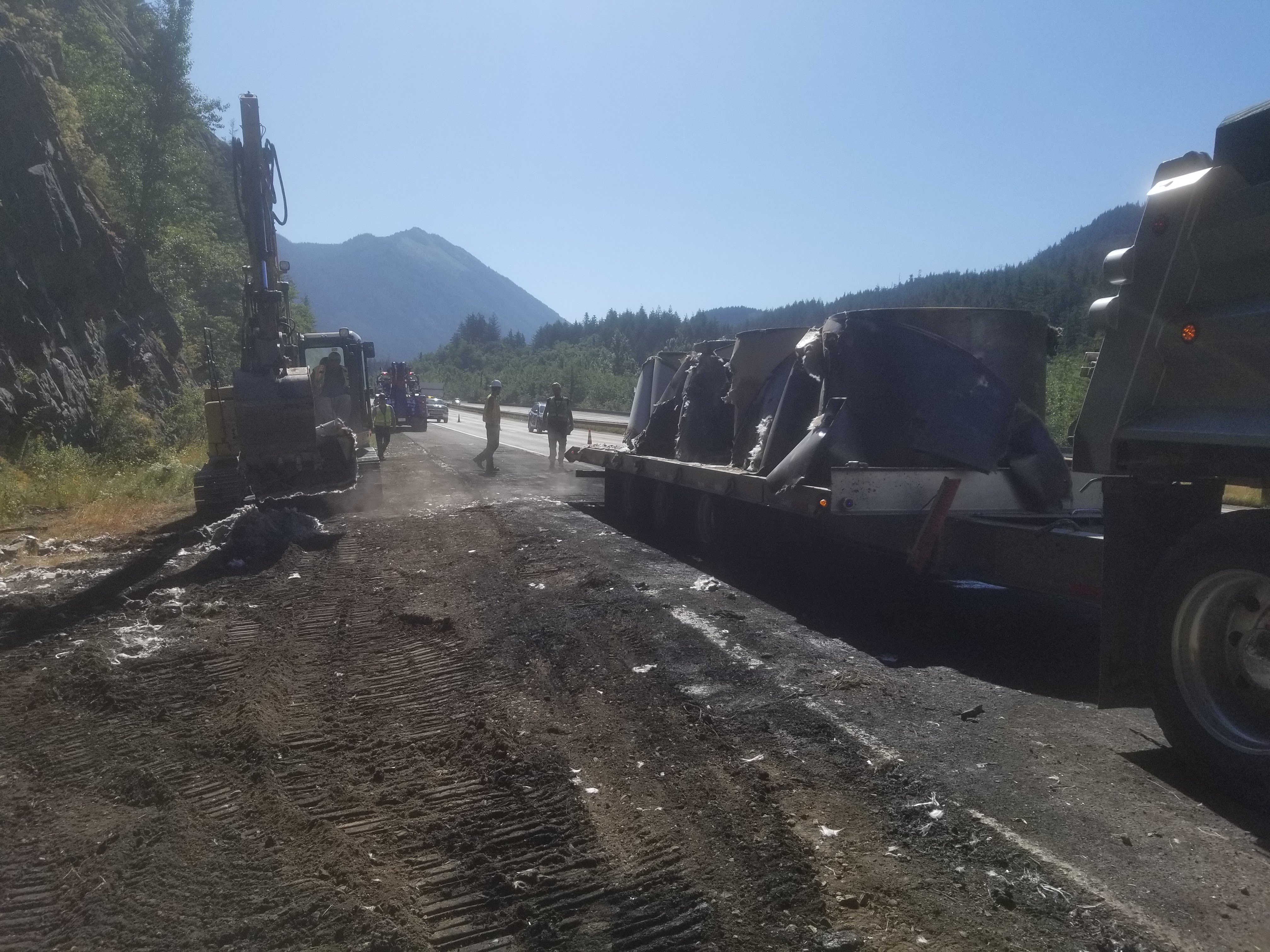 Burned to the ground on Interstate 90 in North Bend, Washington, the Washington State Patrol and WSDOTcalls on #teamprotow and Pro-Enviro Motor Vehicle Spill Response to solve the problem on this busy section of Snoqualmie Pass. Using Miller Industries, Caterpillar, Bobcat Company, Bobcat Equipment, and Advanced Environmental Solutions equipment teamed up with PGH Excavating, Inc. this huge mess was cleaned up and moved quickly and professionally to get all lanes open ahead of schedule. Nice work, team!