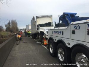 In this incident on January 28, 2017, a Hino box truck completely overturned on SR167 in Auburn, WA. This truck recovery in Auburn required the expert help of Team Pro-Tow. We arrived at the accident with our rigging equipment and assessed the scene. We decided the...