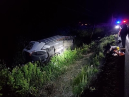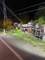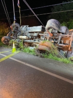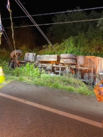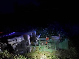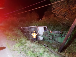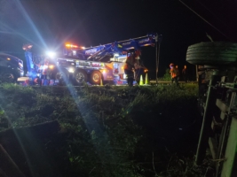 In this emergency dispatch, on May 29th, 2020, we were called in to help with an overturned heavy-duty truck and trailer. The trailer was carrying a wood chipper. The combination was also leaking fluids, so Team ProEnviro also came to help with this equipment recovery. Our team contacted the deputy at the scene and got limited photos of the casualty. We sent a heavy-duty rotating crane-style wrecker, motor vehicle spill response vehicle, flatbed recovery tow truck and an emergency response Hazwoper.