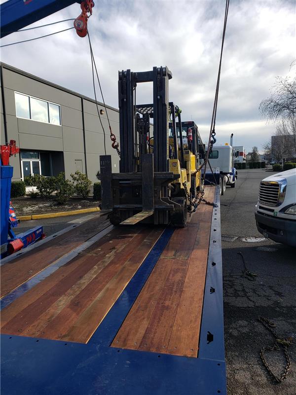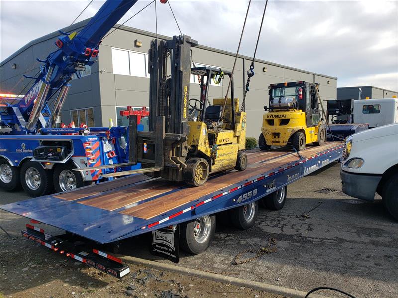 With the forklift upright, we repositioned the equipment, rerigged and did an overhead lift. The forklift was moved to the heavy-duty flatbed and secured into place. Once we secured the first equipment recovery, the second forklift was loaded with ease.