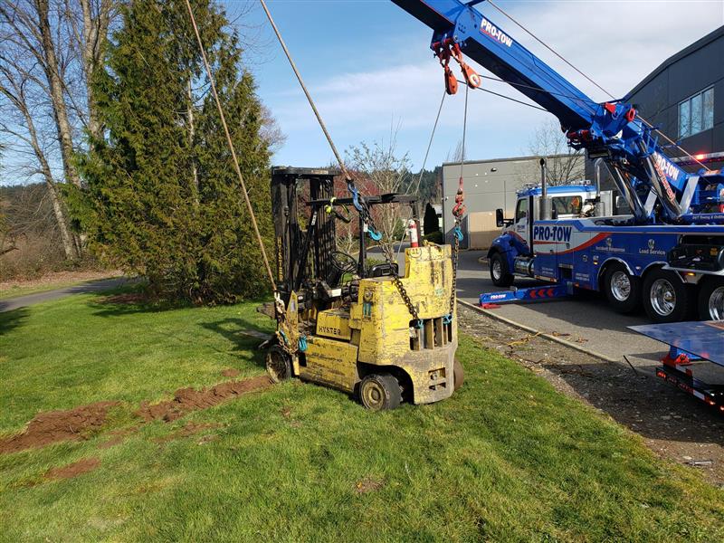 Our team received an emergency dispatch involving two heavy-duty forklifts. One of them had overturned onto its side and needed a forklift recovery. Team Pro-tow dispatched the necessary equipment to both safely recover the forklifts and avoid more damage.
