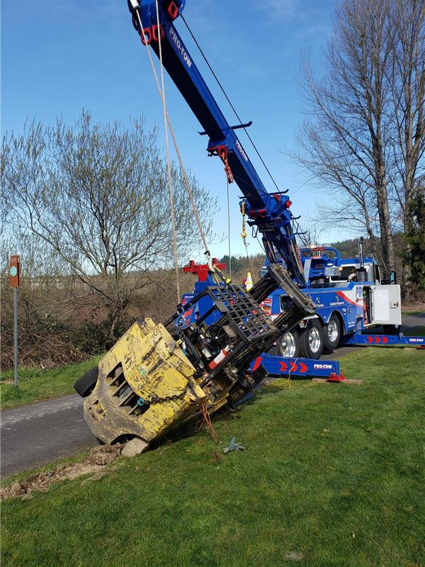 Pro-Tow offers round-the-clock emergency towing services. While many of our recoveries involve semi-trucks and other heavy trucks, equipment recovery is also a service we offer. We once helped lift a military tank to change a flat tire! If you need something heavy lifted and moved, we can help. Learn more about Pro-Tow services.