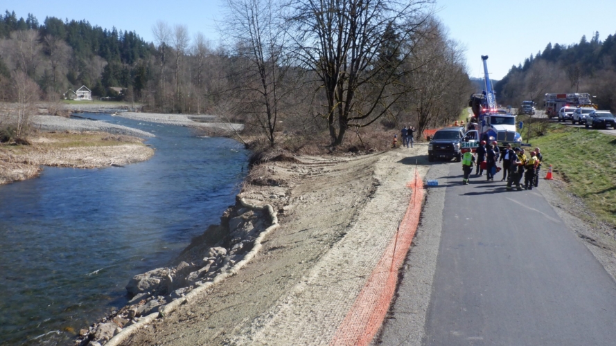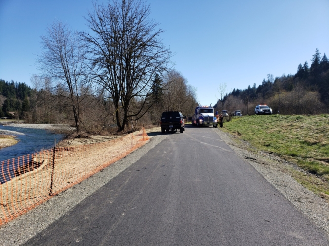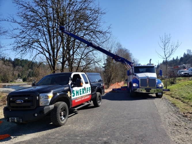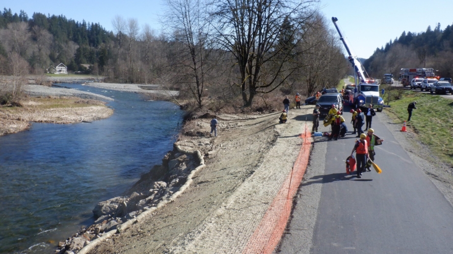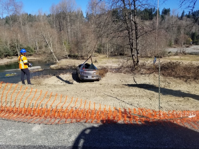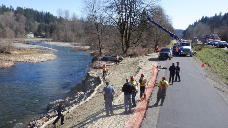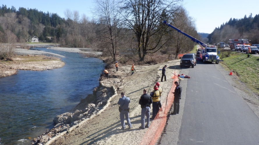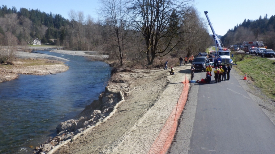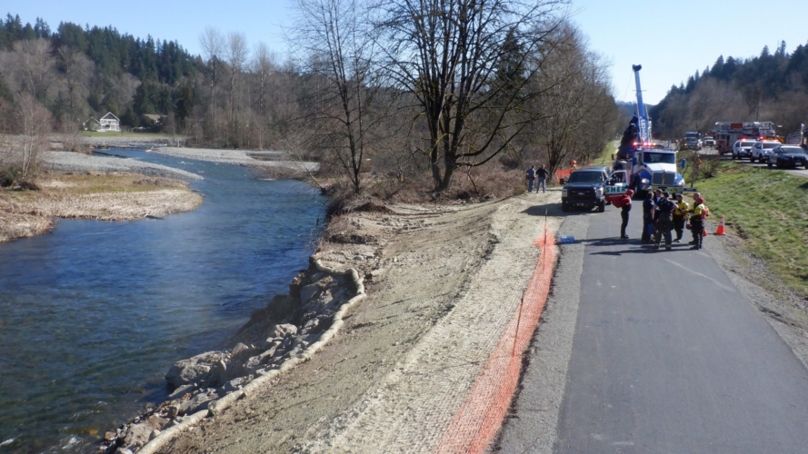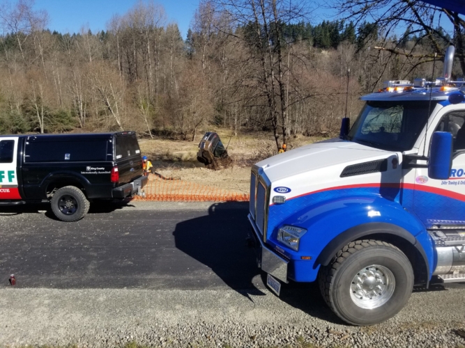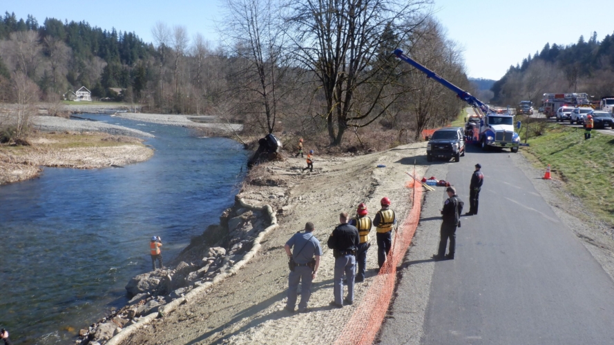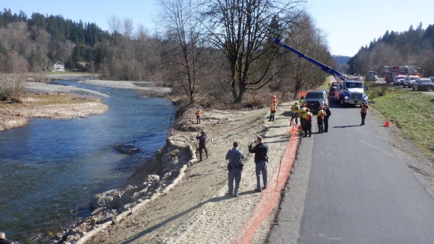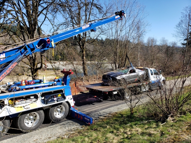 Team Pro responded to the scene with a light-duty recovery wrecker and reported to Incident Command. Responders included the Washington State Police, Washing State Fire Department, and King County Parks and Recreation.