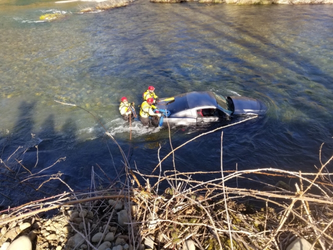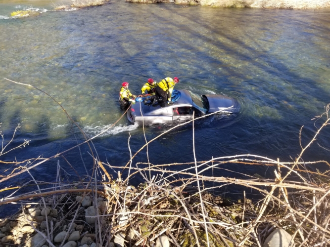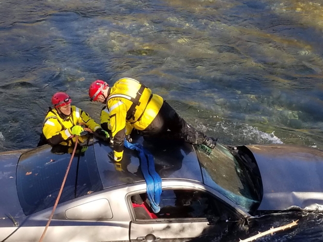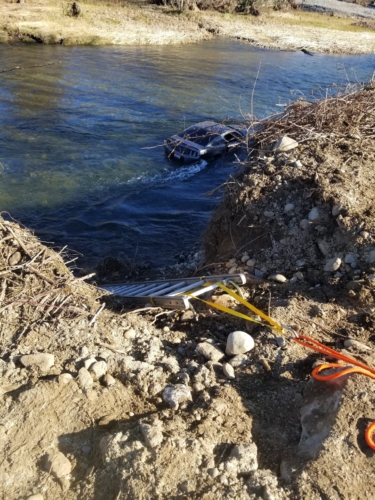 After we evaluated the scene, we learned that the accident recovery was going to need additional trained personnel and equipment than we currently had on site. After authorization, we dispatched for the extra people and equipment required. That included a heavy-duty crane style wrecker, Recovery Safety Supervisor, and a flatbed tow truck for transporting the car after it came out of the river.
