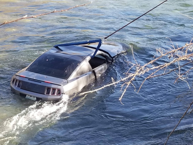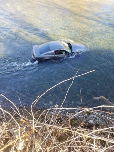 Our accident recovery dive team received detailed instructions on how to install the specialty recovery rigging on the car in the river. They were able to get things hooked up properly, so our crane style wrecker could pull the vehicle out of the water. The overhead crane was able to lift the car out of the river without any additional damage to the sensitive wetland area and riverbank.