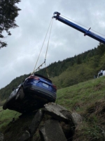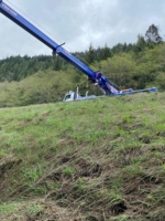 Our team arrived at the scene with one of our long-reaching cranes for the emergency towing rescue. We did a scene assessment to decide the best way to rescue the car before getting to work. After extending the crane arm out extremely far, we managed to reach and safely fish out the Nissan Rogue.