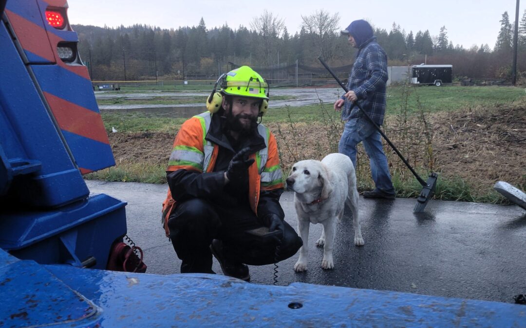 Sadie the Recovery Dog on a heavy-duty recovery in Maple Valley