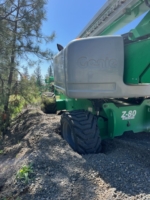 In this incident, on May 5, 2023, a Genie Z-80 boom lift got stuck in the gravel on a residential construction site. According to the manufacturer’s specifications, this heavy-duty equipment weighs about 37,500 pounds! Despite being a 4×4, this magic Genie was stuck deep and needed heavy equipment towing.