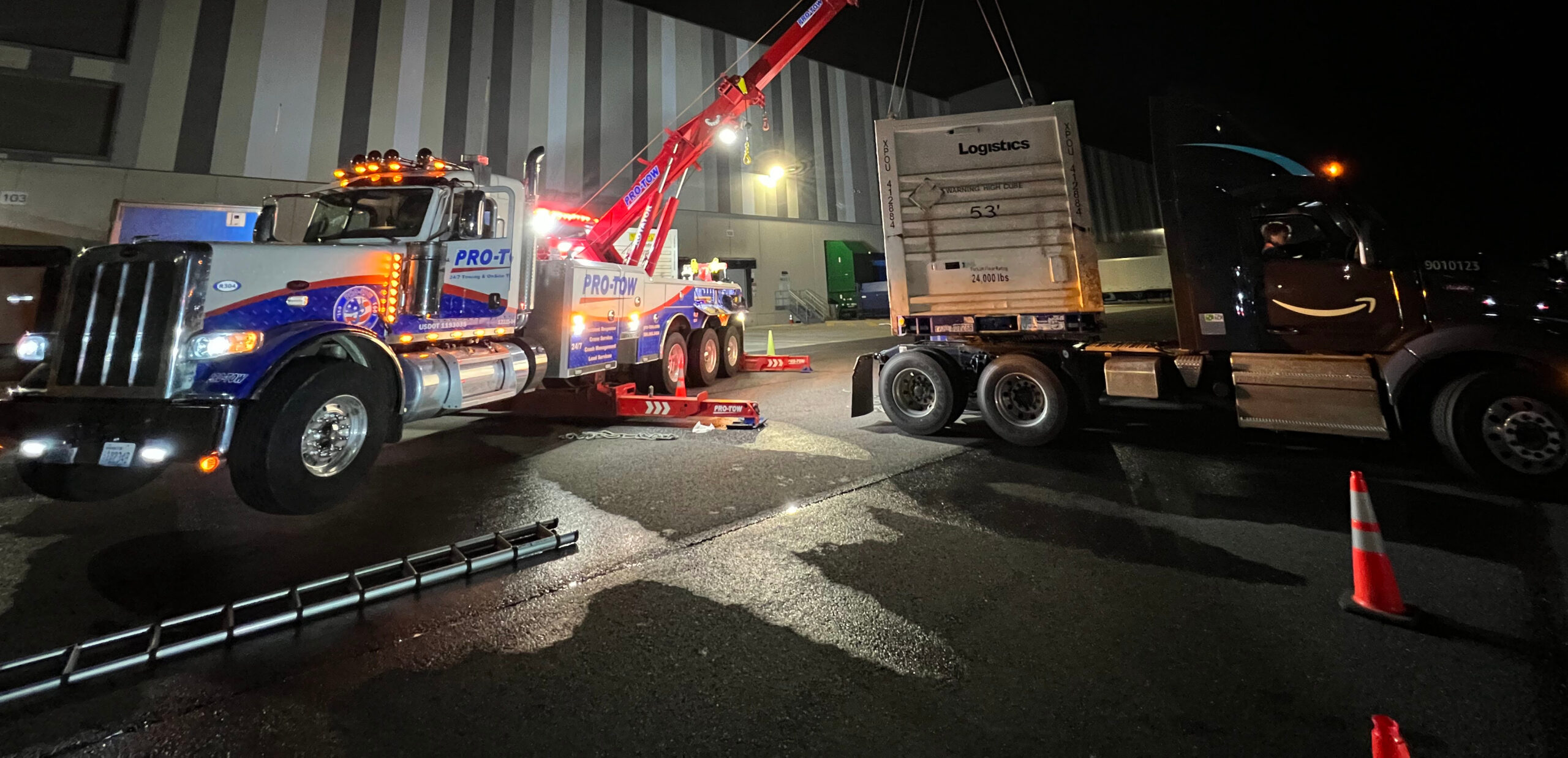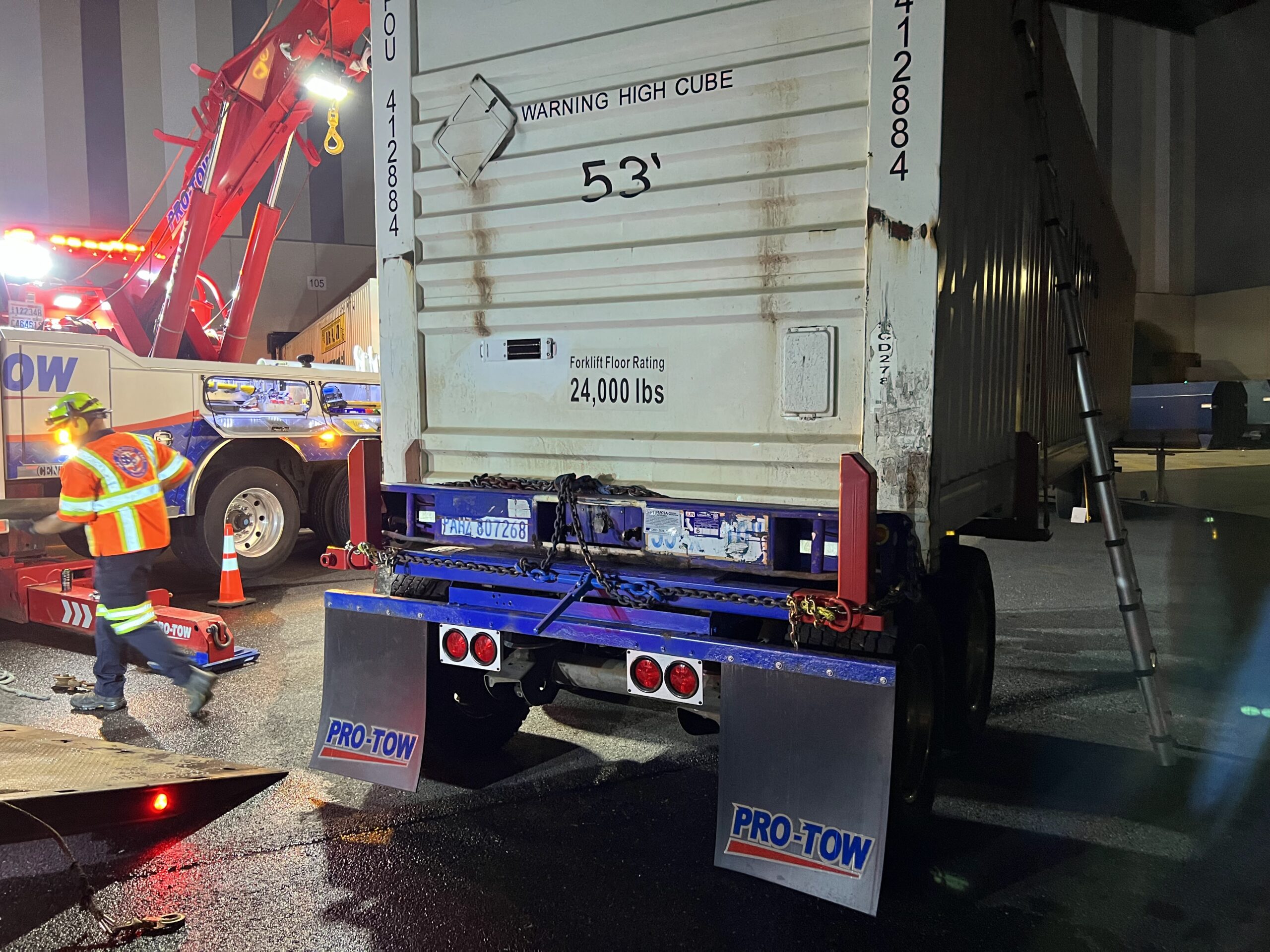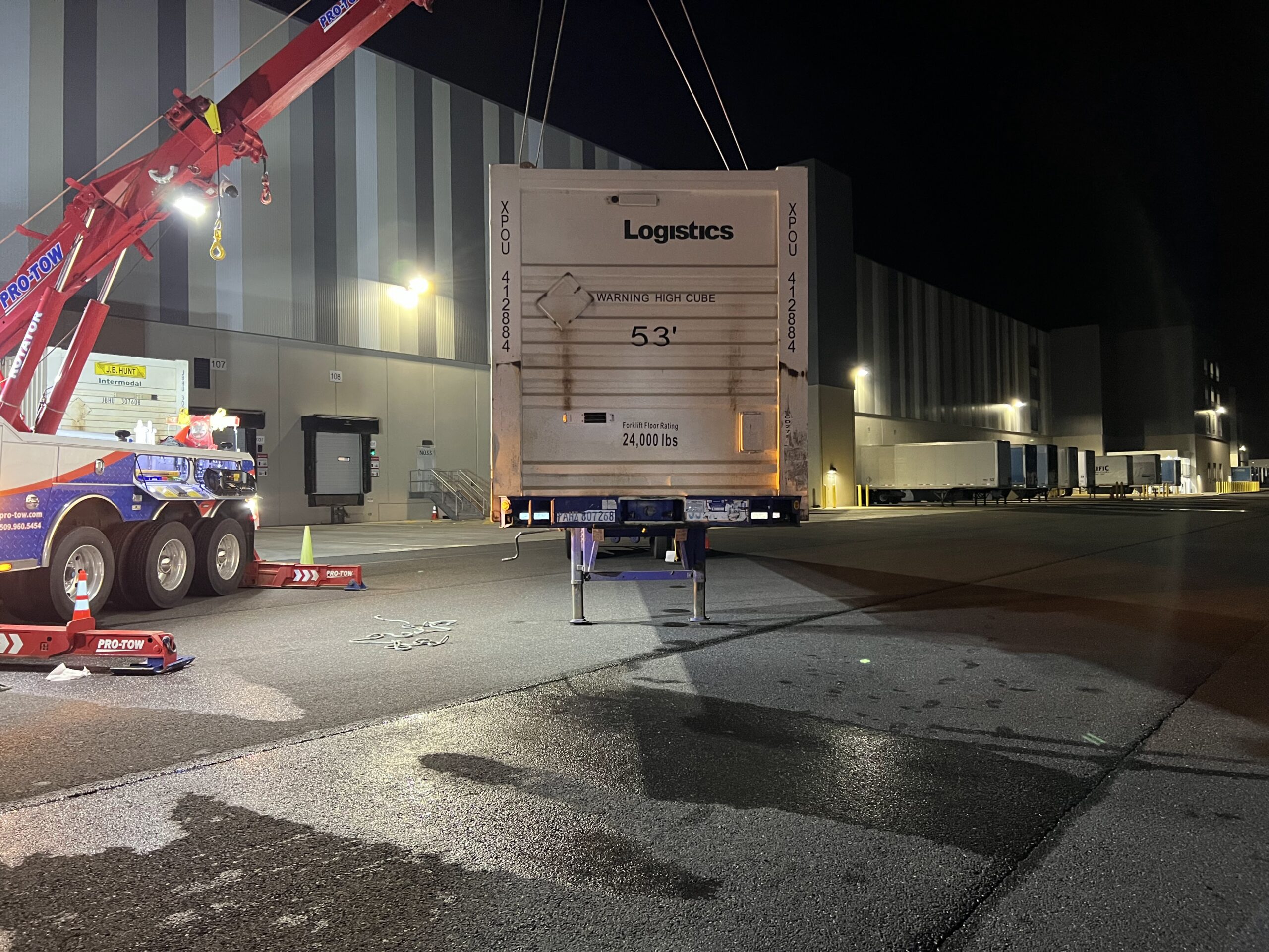 When something unexpected happens with a load or on the road, we understand the importance of getting things up and running again! When we received the call for a heavy trailer recovery in a busy warehouse yard, we prioritized safety and getting the job done quickly to reduce downtime for our customers.