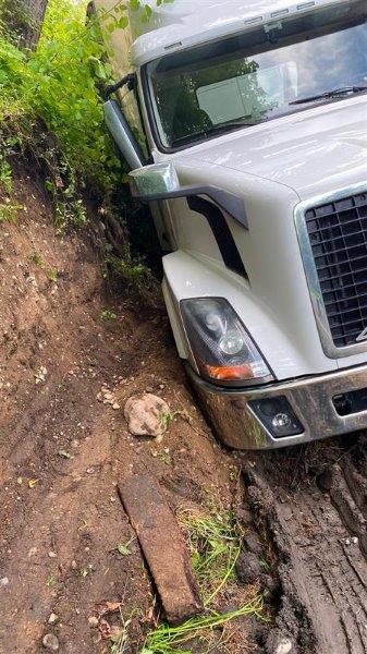 In this incident, on May 18th, 2020, Team Pro-Tow responded to a dispatch for a truck and trailer that had gone off the roadway into the ditch on Witte Road. The trailer had a 30,000 lbs load, and together with the truck, the entire lift was over 60,000 lbs. The road was narrow, which made it challenging to complete this heavy truck tow.