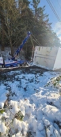 Once we arrived at the scene, we started with a scene assessment for the semi-truck recovery. The semi-truck had rolled well into the ditch and was on its side. We decided to hook up the crane to the trailer body and drag it closer to the edge of the ditch. After that, we would focus on the uprighting and recovery stages.