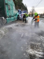 In this incident, on December 27, 2021, a semi-truck hauling potatoes tipped over in Sumner, WA and rolled into a ditch. During the accident, the potato load also spilled across the road, which also needed cleanup.
