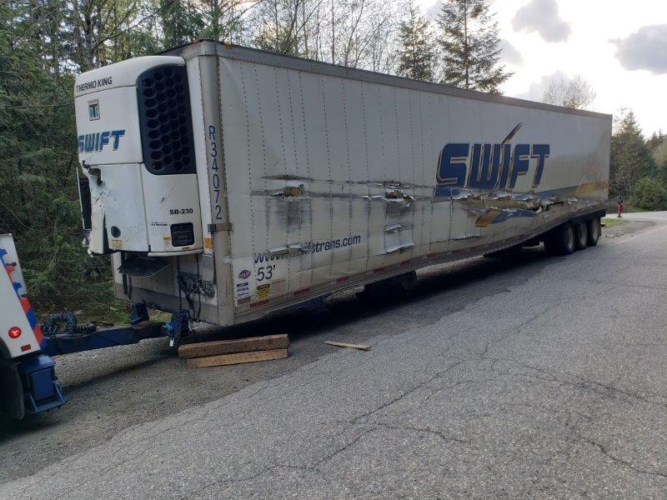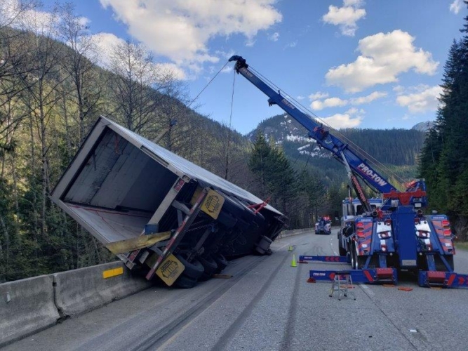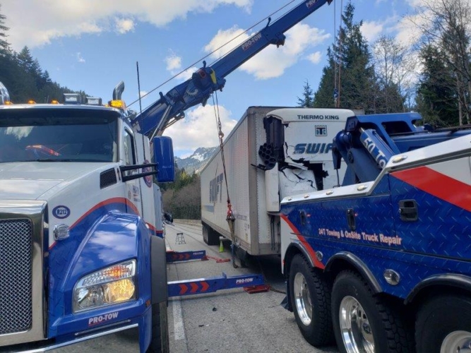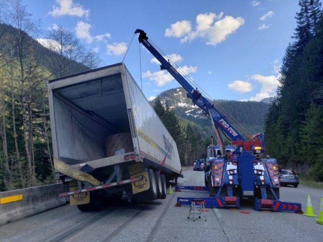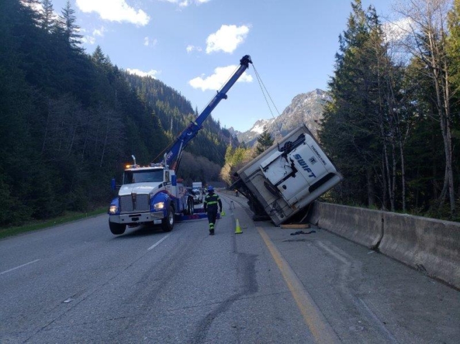 #teamprotow called on to open I-90 after a semi-truck loses its fully loaded trailer nearly tumbling town the embankment. Saved by the jersey barrier, and a stroke of luck the load of paper rolls overturned but everyone was safe. The tractor towing the trailer lost the 5th wheel hitch it uses to connect to the trailer and they became separated. #teamprotow was called on to safely and quickly open all lanes with minimal closure time during an evening traffic period. Utilizing a heavy duty rotating crane style wrecker and a heavy duty wrecker #teamprotow was able to prevent any further loss of load.