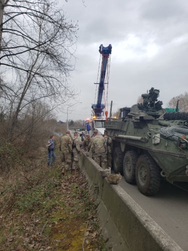 The time we helped out the US Military change a tire on a tank blocking traffic was a service call we will always remember! In March 2019, Team Pro-Tow responded to a call to help the Washington State Patrol, Washington State Department of Transportation, and the US Army to assist with a flat tank tire! It was literally roadside assistance for an army tank.