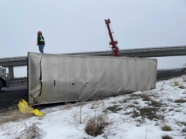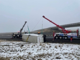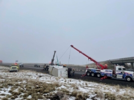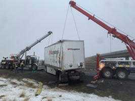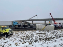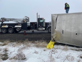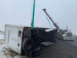 In this incident, on January 15, 2022, a semi-truck hauling a trailer of Sodium Hydroxide got into an accident. The semi-truck tipped over and went off the roadway near Ritzville, WA. Team Pro-Tow responded to help with the semi-truck tip over.