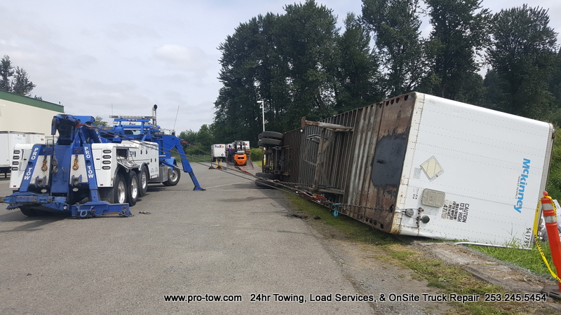 Don’t sweat, just call Pro-Tow’s 24-hour emergency semi truck towing service line and we will be there to help you out. No matter how remote the location. We can get your truck back on its wheels and give it a tow. If need be, we can help recover your load and get it ready to continue its journey.