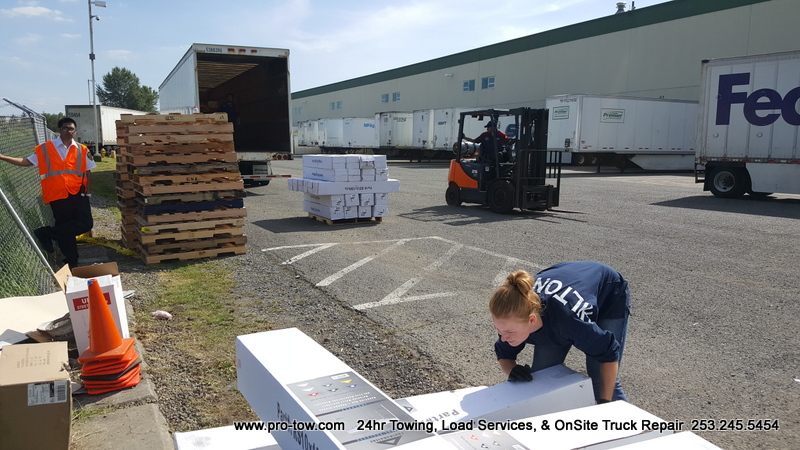 When there is a semi truck accident, it’s common for the load to spill out of the trailer. It doesn’t have to be transporting a liquid to be considered a spill! In this case on July 1, 2016, you’ll see that there are hundreds of product boxes spilling all over the road and ditch. When this happens, a logistics company needs more than just a semi tow truck service. They need help with load handling.