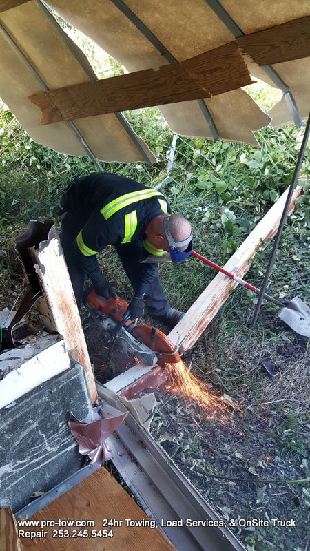 A Tipped Semi Truck Loses It’s Load in Sumner, Washington.