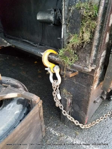The disadvantage? They’re unstable when raised in the dumping position. If the ground isn’t level, you typically couldn’t or shouldn’t use a semi-trailer end dump truck for the job. It could result in a semi-truck accident. Because this type of truck is larger and its operating parts more complex, they require a specialized semi-truck tow service to get them upright again if flipped. As always, Pro-Tow was up to the challenge.