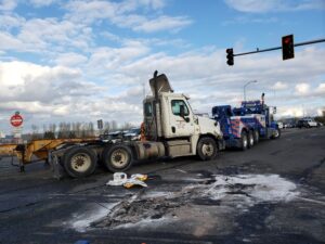 • Semi-Truck Winch-Out on Winter Road in Spokane