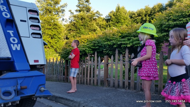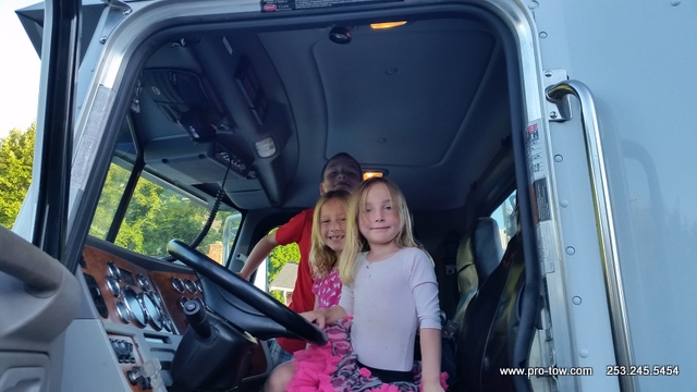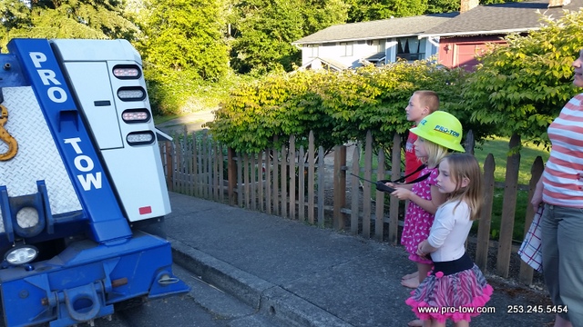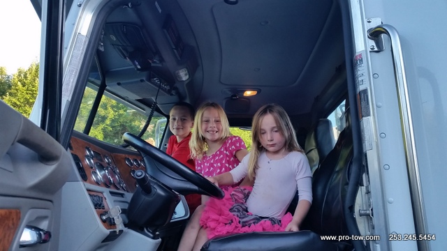 During a recent trip to Ferndale, WA to tow a tractor a trailer back to Seattle, WA we decided to stop and do a little training and recruiting at the same time. What we found was a few fabulous kids with great potential to be top tier tow truck operators. Their aptitude to operate the remote controls was like no other. They were able to flawlessly operate the tow truck boom. In addition, their excitement to work was incredible. The police and highway departments will be in good hands as these recruits perfect their skills.