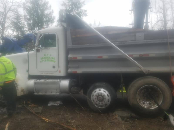 On March 6th, 2020, Sometimes we don’t know how extensive an accident is until we arrive on the scene. With this incident, a dump truck had landed itself in the ditch. We received a dispatch for truck accident recovery and provided a quote to the customer based on the images we had received. He declined but called back later in the day, asking for one of our trucks to come out to help with a straight and forced winch extraction.