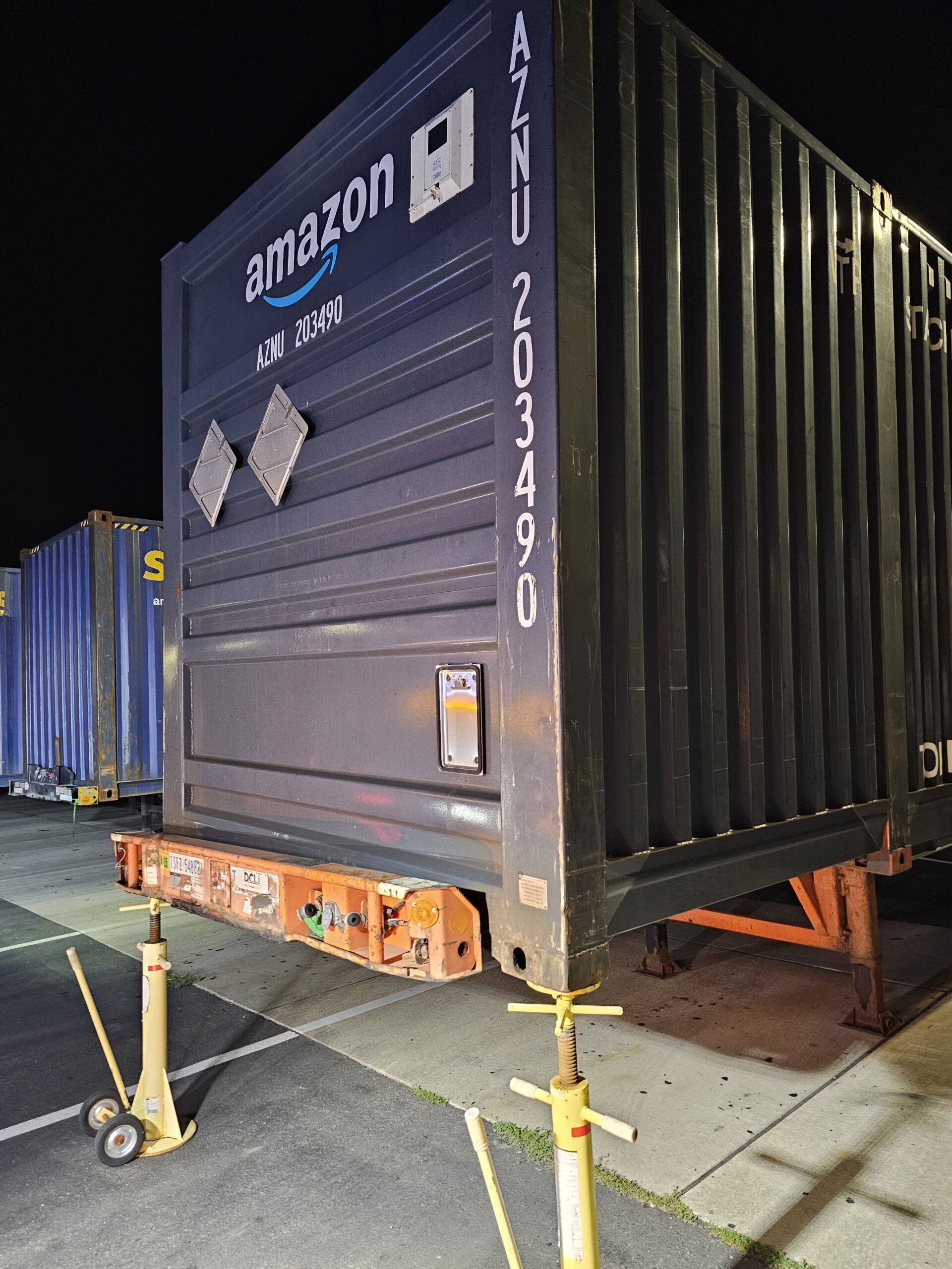 With the wrecker perpendicular to the container, we rigged, rotated slightly and lifted it up.
